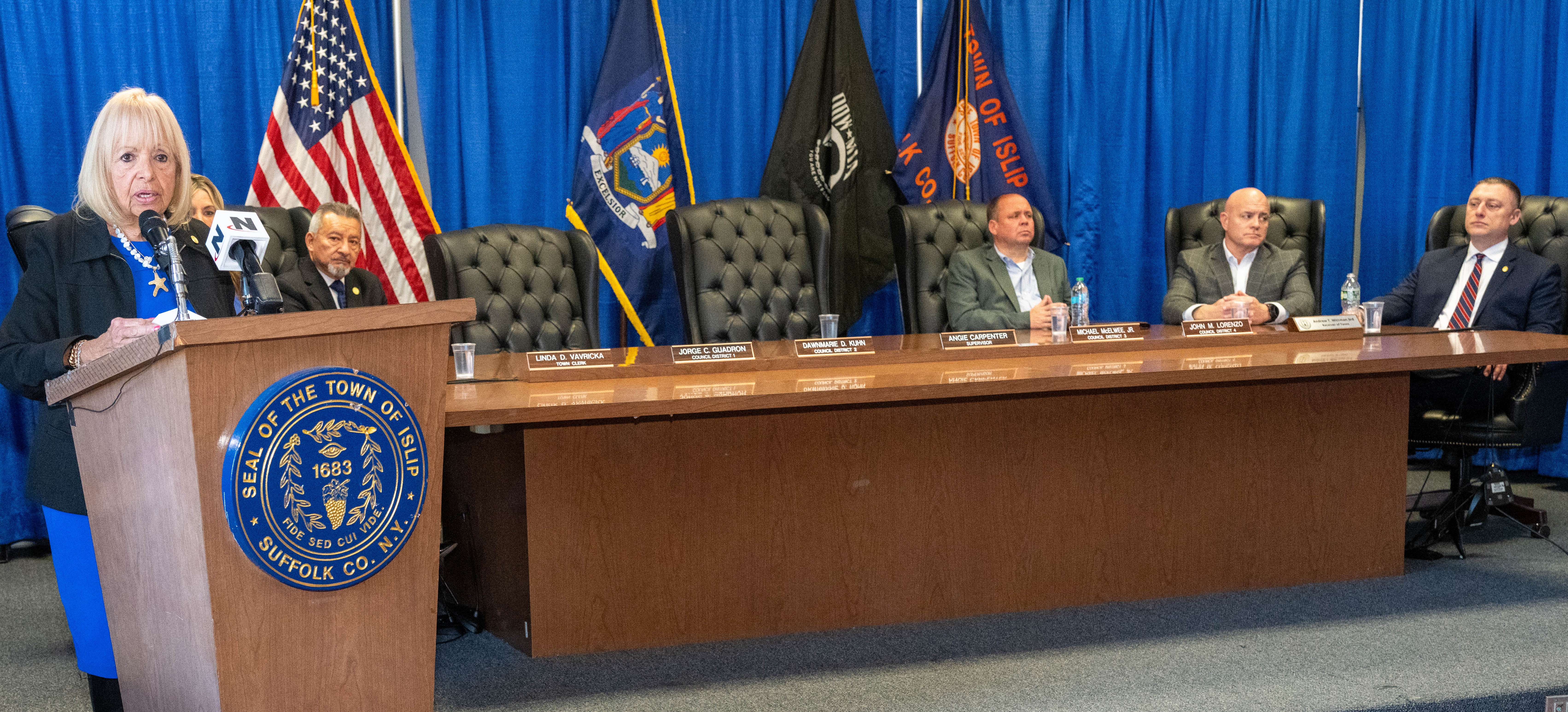 Islip, NY – Islip Town Supervisor Angie Carpenter delivered her 11th annual State of the Town address, outlining the progress the Town has made in recent years and sharing a vision for the continued growth and success of the Town of Islip. During the address, Supervisor Carpenter highlighted the dedicated work of Town employees, Commissioners and Department Heads, the strength of the local community, and the strategic investments being made to ensure a prosperous future for residents.